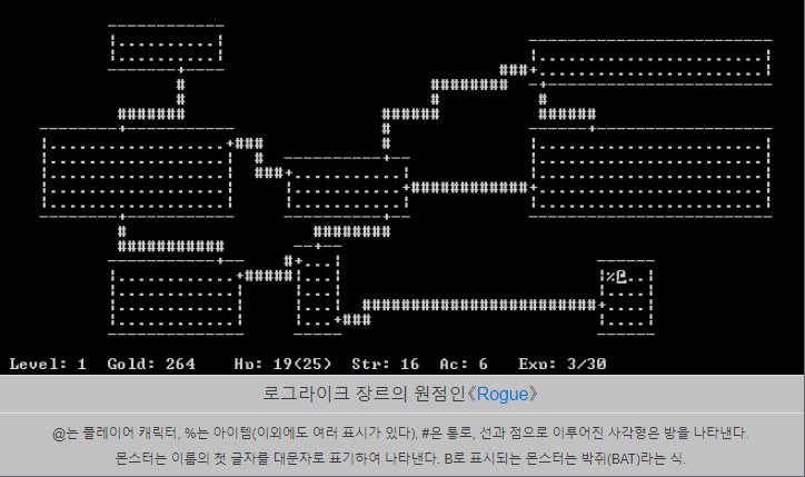 문자를 이용해 게임처럼 느껴지게 했을 뿐이죠 하지만 로그라는 게임의 시스템이 훌륭했기에