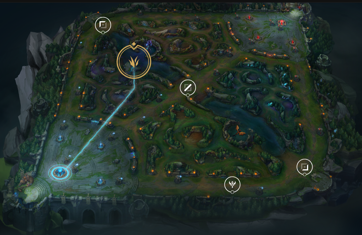 기본적으로 탑 정글 라인 바텀 4개의 라인이 존재하며 이중 바텀은 2명의 유저가 한 번에 가서 5명이 해당