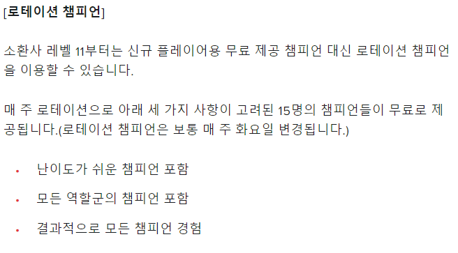 이 로테이션 시스템을 이용해서 매주 바뀌는 챔피언들을 경험하다 보면 언젠간 자기에게 딱 맞는 챔피언을