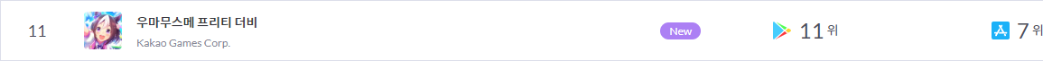 우마무스메 한국서버는 6월 20일 출시였습니다 6월 출시 상위권 반응에 연이어