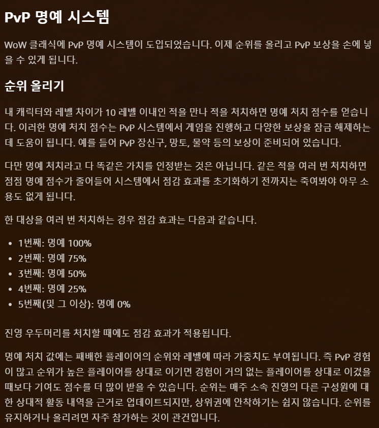 블리자드도 나름 무분별한 학살을 막기 위해 10 레벨 정도 차이나는 유저를 잡으면 점수를 주지 않거나