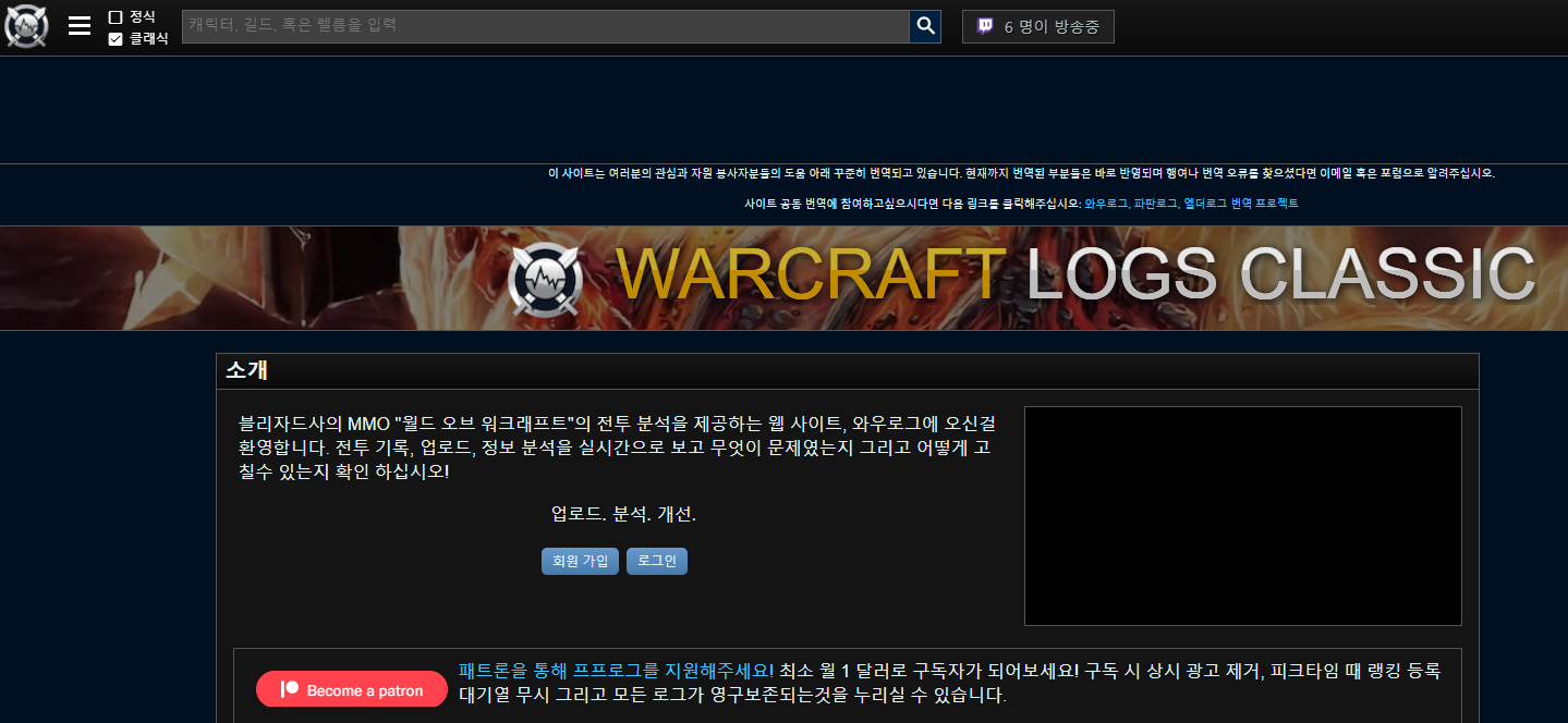이 사이트는 클래식 말고 본 서버의 로그를 볼 수도 있으며 클래식이 업데이트되자 클래식에 맞게 출시도 하였습니다