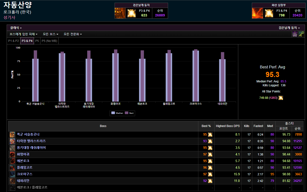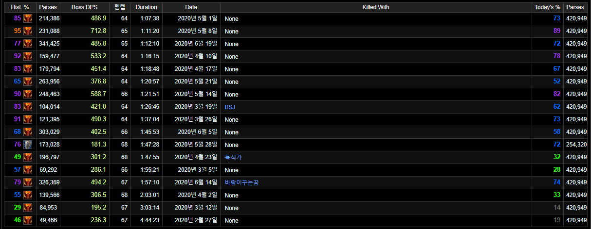 힐러의 경우도 똑같이 베스트의 에버리지가 나옵니다 하지만 힐러의 경우에는 DPS가 아닌 HPS