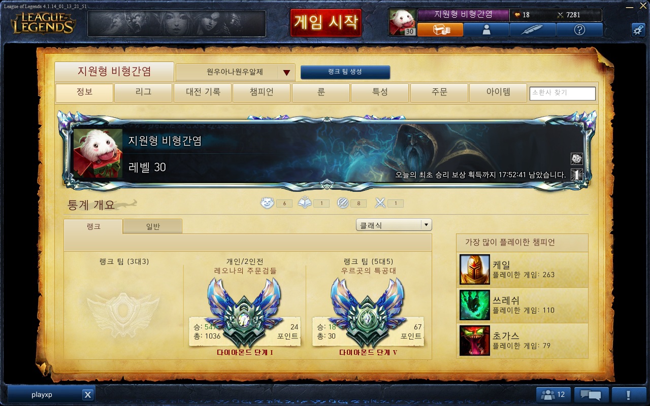 안녕하세요 저번 글의 주제는 롤과 도타 비슷하지만 다른 AOS에 대해 차이점에 대해 알아보았습니다 이번에는 롤을 플레이하면서 느꼈던 점에 대해 써보겠습니다 저는 아주 초기 때부터 롤을 하던 유저로써 북미 서버에서부터 약간씩 찍먹을 하기 시작하여 한국 서버로 넘어왔을 때부터 본격적으로 즐기기 시작한 유저입니다 롤에는 랭크 시스템이 존재하며 지금은 아이언 < 브론즈 < 실버 < 골드 < 플레티넘 < 다이아 < 마스터 < 그랜드 마스터 < 챌린저 순으로 존재합니다 제가 하던 시즌3에는 브론즈 < 실버 < 골드 < 플레티넘 < 다이아 < 챌린저로 지금과는 좀 더 세분화가 되지 않았습니다 그만큼 롤을 오래 해보았고 옆에서 지켜보았으며 롤의 모든 장단점을 보았다고 할 수 있습니다 우선 저는 맨처음부터 롤을 깊게 할..